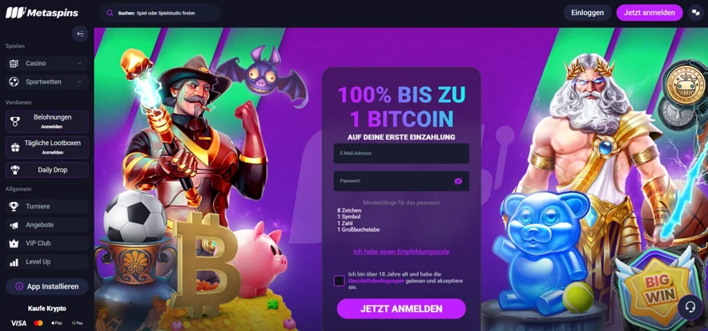 | Metaspins | 100% bis zu 1 BTC (in USDT) | Sofort | Curacao | 9.5/10 |